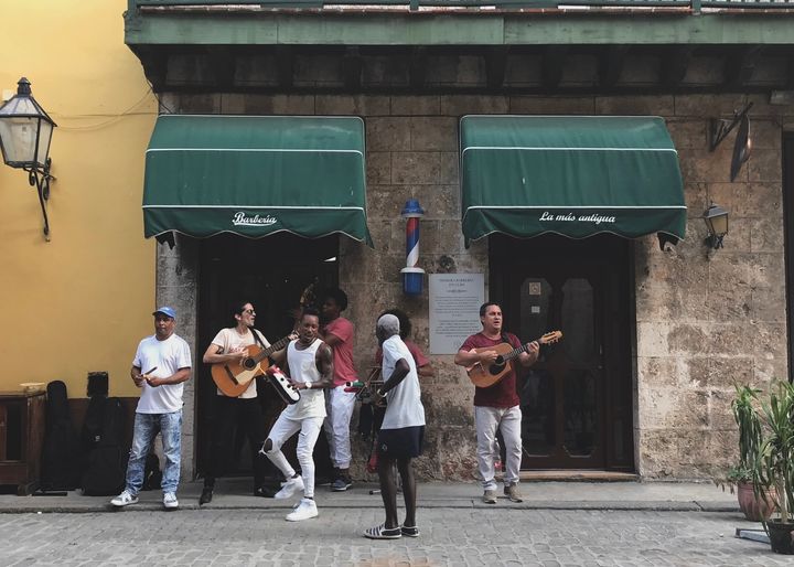 キューバ首都ハバナで自由に踊り演奏する人たち