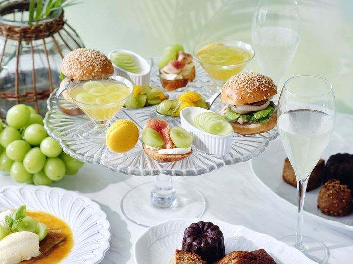 旬のシャインマスカットを、ブーランジェリーならではのラインナップで楽しめる珠玉のアフタヌーンティー。しっとりと美味しい晩夏の時間を過ごしては。