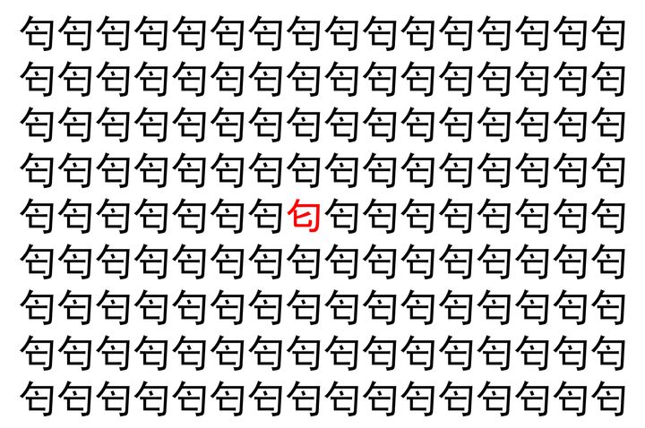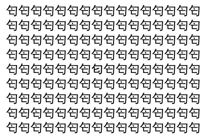【脳トレ】「匄」の中に紛れて1つ違う文字がある!?あなたは何秒で探し出せるかな??【違う文字を探せ!】