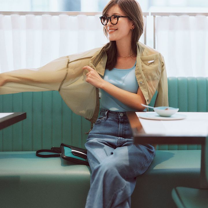 急激な温度差もこれ1枚でOK。絶妙なシアー感が今っぽい。シャツ¥17,930(メゾンスペシャル/メゾンスペシャル 青山店)タンクトップ¥7,700(ボールジィ/トゥモローランド)デニム¥30,800(ヤヌーク/カイタックインターナショナル)メガネ¥42,900(アイヴァン/アイヴァン東京ギャラリー)ピアス¥29,700(ブランイリス/ブランイリス トーキョー)ネックレス¥217,800(ココシュニック)ショルダーバッグ¥70,400(ピエール アルディ/ピエール アルディ 東京)