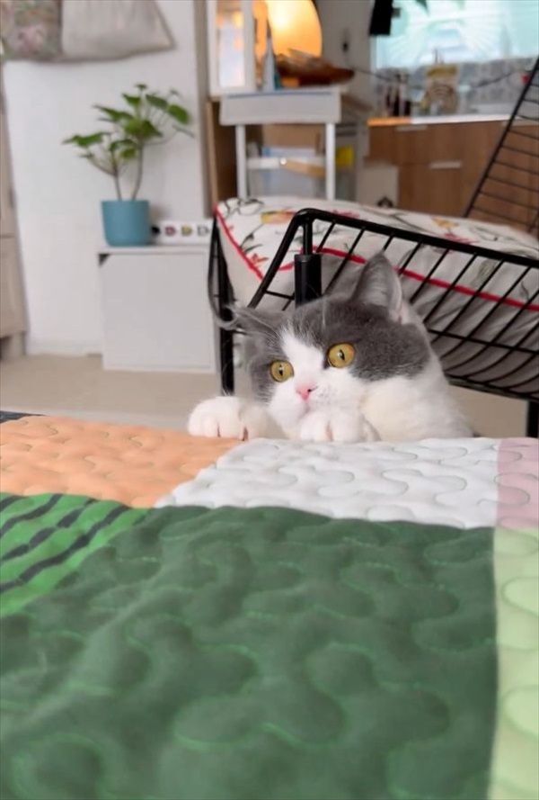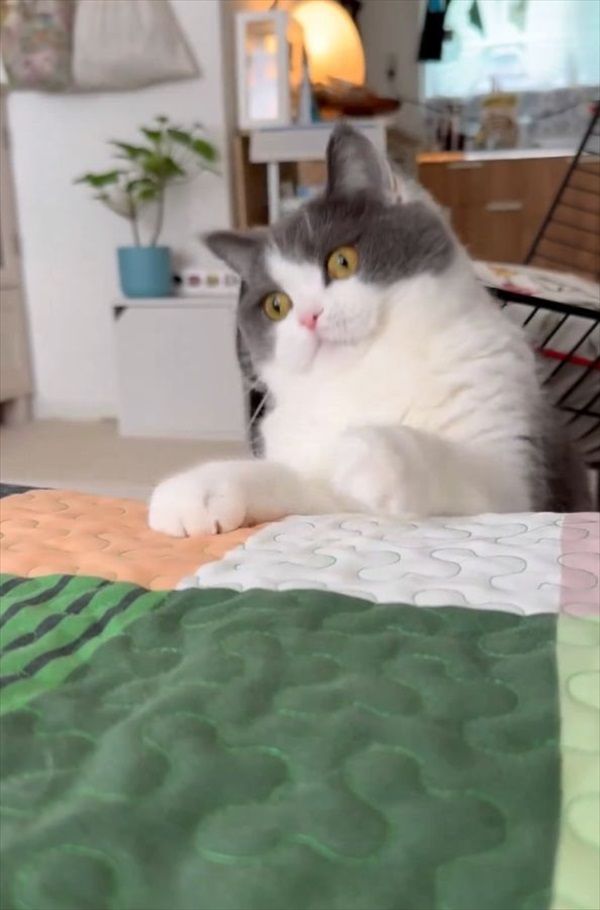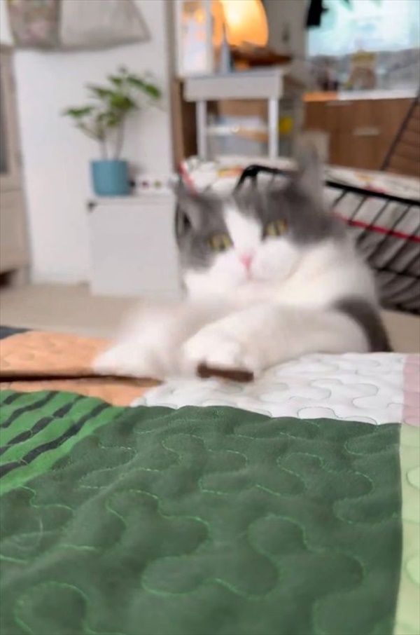 ご紹介するのは、@おもち(@omochiomoching)さんがXに投稿された動画です。 ブリティッシュショートヘアの『おもち』ちゃんと遊んでいた時のことです。