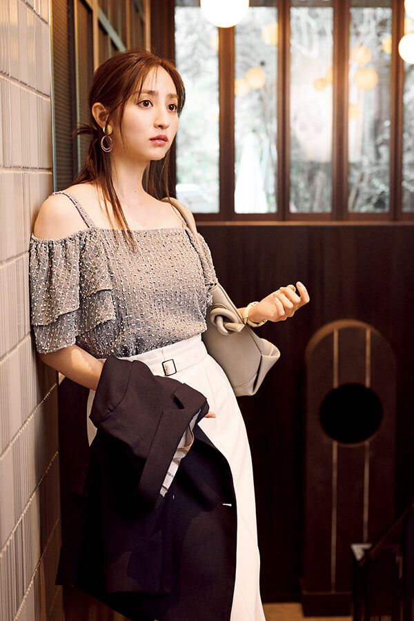 3. ジャケットの中何を着る?【オフショルブラウス】ならジャケットのインナーにもオフ仕様にも大活躍!