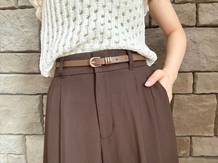 腰回りのタックとセンタープレスで脚長効果バツグン◎