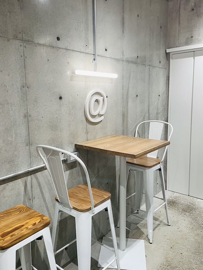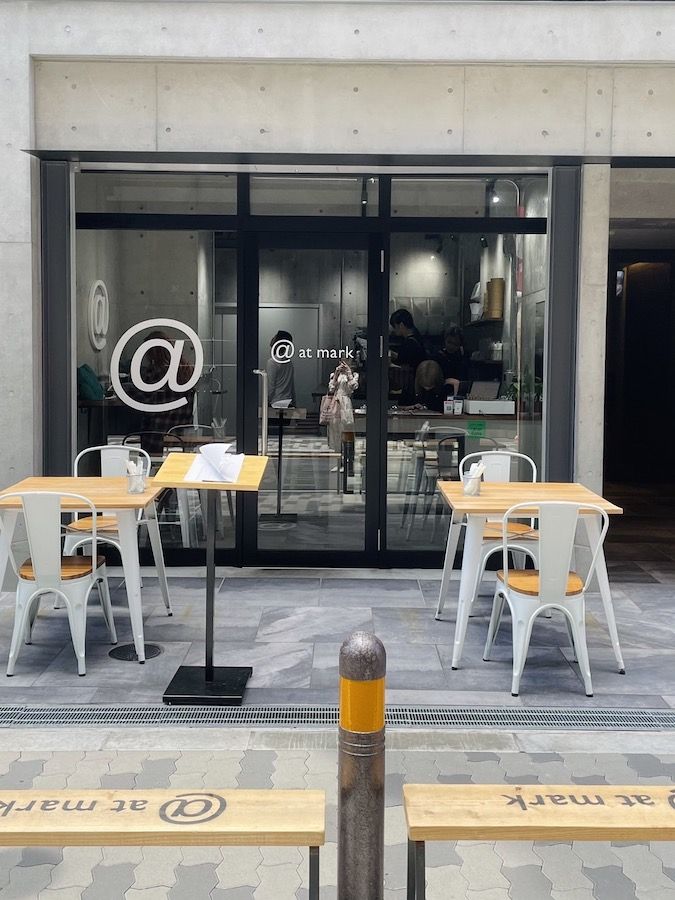 アットマークのロゴが目印のグレーを貴重としたお洒落な店内で、外にも席があります。時間は8:00〜23:00(L.O. 店内22:30/テイクアウト 22:45)まで営業しているので、朝活から夜カフェにもおすすめです! ぜひみなさんも行ってみてください♪