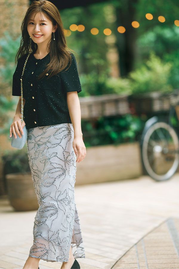 ペンシルスカートの人気が再燃!今年っぽく着るならドレスのようなリッチデザインを選んで