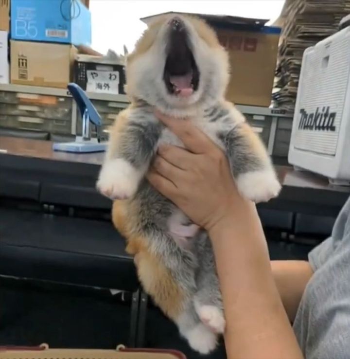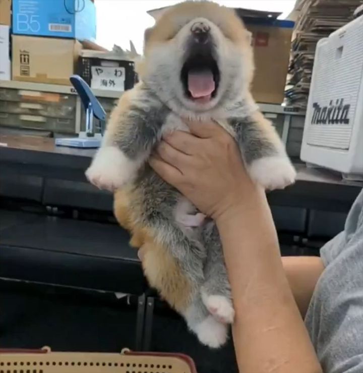 3. かわいすぎる!秋田犬の子犬のあくびに「ずっと抱っこしていられる」「体つきがコロンコロン」