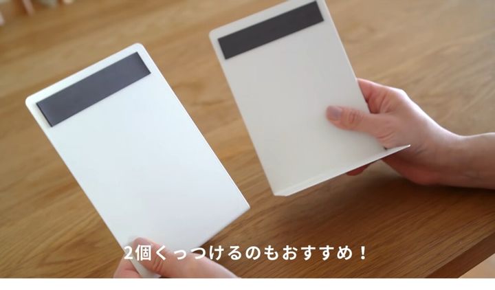 また、マグネットシートを貼り付ければ、2つ組み合わせて簡易的なコの字型ラックにすることができます。
