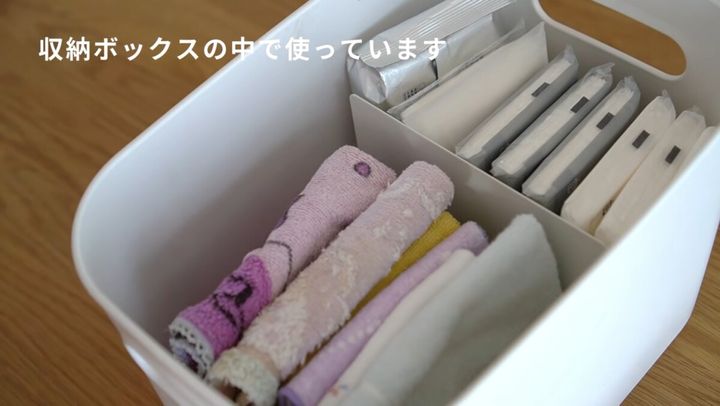 引き出しの中のTシャツや、ボックスの中のタオルやティッシュなどの仕切りにも使えます。幅が小さいブックエンドをを使えば、小さめの収納ボックス内にも設置できそうですね。