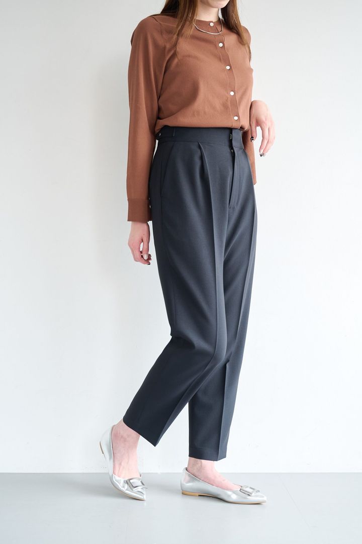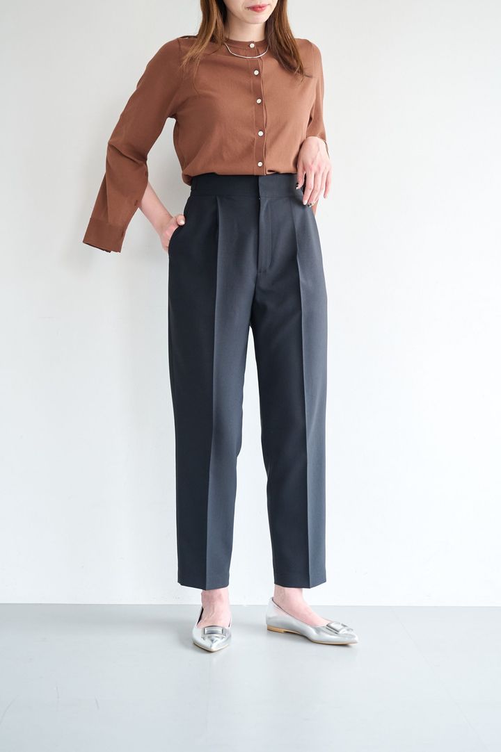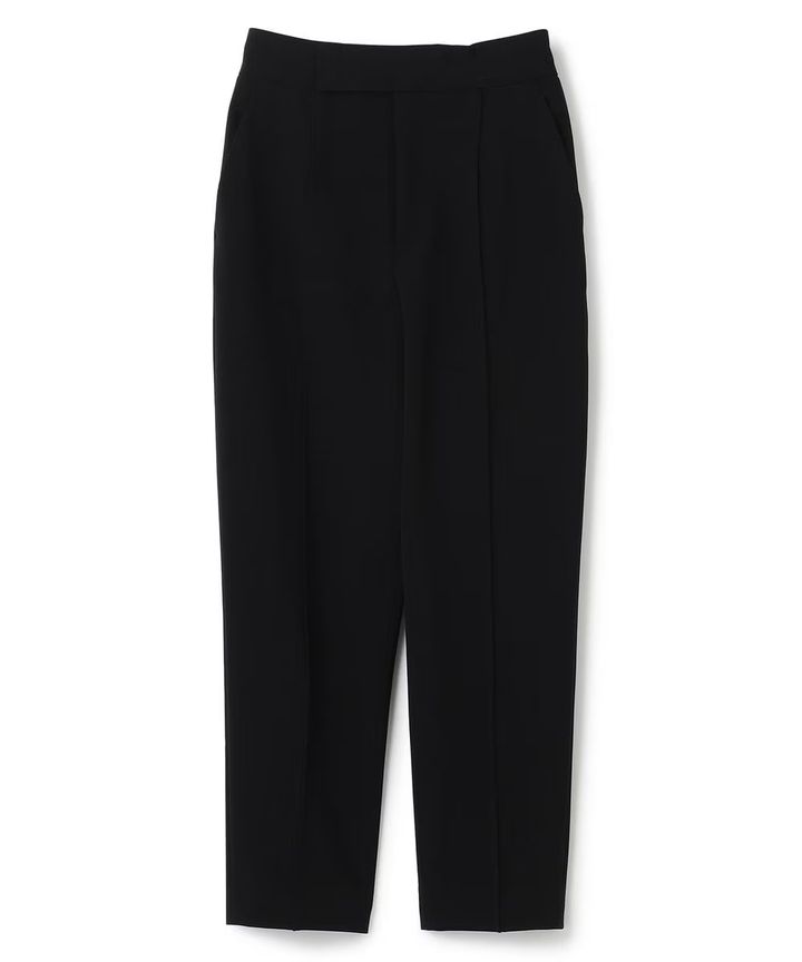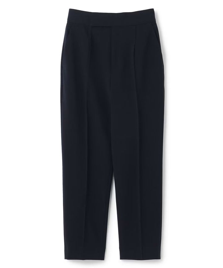 トップスを選ばないテーパードパンツは、オフィスシーンでも活躍! シワになりにくいセンタープレス加工に加え、撥水&マシンウォッシャブルのイージーケア。体のラインを拾いにくいしっかりした素材感で、ヒップ周りをさりげなくカバーしてくれるのもうれしい。