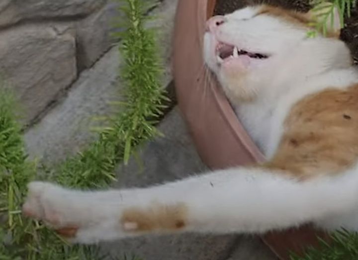 なんと植木鉢の中で爆睡する猫さん。