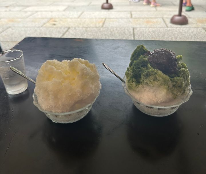 私は、金時抹茶氷 旦那さんは 練乳氷を注文!
