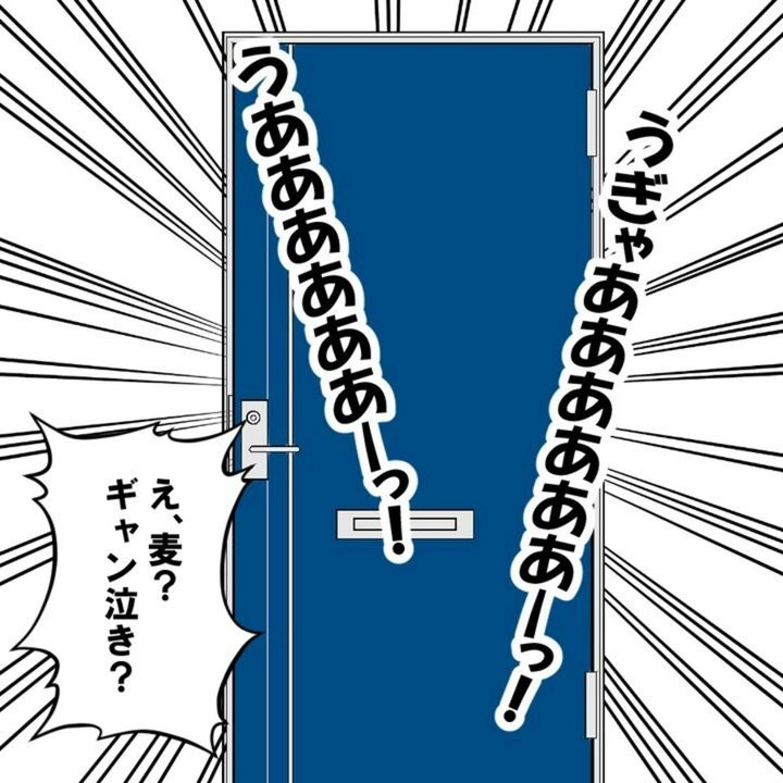 たどり着いた部屋の中からは、麦ちゃんがギャン泣きする声が…。中の状況がわからないだけに、小梅は恐怖でいっぱいだったのではないでしょうか。
