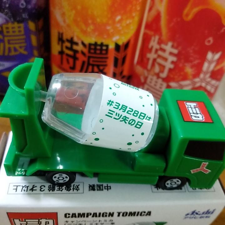 我が家は初めて出会ったので三ツ矢ミキサー車を。
