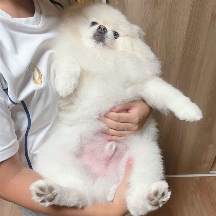 元気に動き回っていた様子のポメラニアン。 ところが、飼い主さんにだっこされた途端・・・。