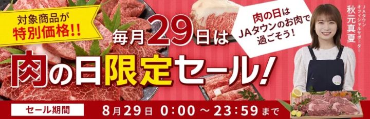 JA全農の産地直送通販サイト「JAタウン」では、毎月29日に「肉の日限定セール」を開催。国産のお肉をお得な価格で買えますよ。