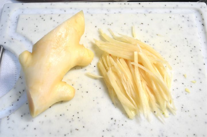 1.新しょうがは千切り、または5mm幅程度の細切りにする。
