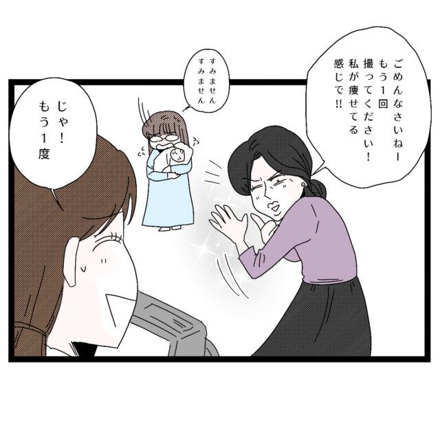 アサ子さんと息子くんの退院の日に迎えに来てくれた実母、記念写真を撮ってもらおうと看護師さんにお願いしたのですが「写真うつりがよくない」とせっかく撮影した写真をすかさず削除!!そして「ごねんなさいねー。もう1回撮ってください!私が痩せてる感じで!!」と要望の多い実母に「すみません。すみません」振ら謝りするアサ子さん、看護師さんが気を遣って「じゃ!もう1度!」と声を掛け撮影してくれることに。