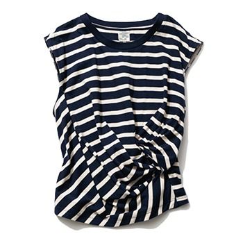 カシュクールのような変型デザイン。さらにノースリでボーダーの幼さを払拭。 白×ネイビーボーダーTシャツ/バウム ウンド ヘルガーテン(エディット フォー ルル)