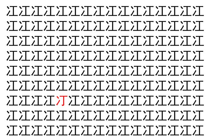 【脳トレ】「冮」の中に紛れて1つ違う文字がある!?あなたは何秒で探し出せるかな??【違う文字を探せ!】