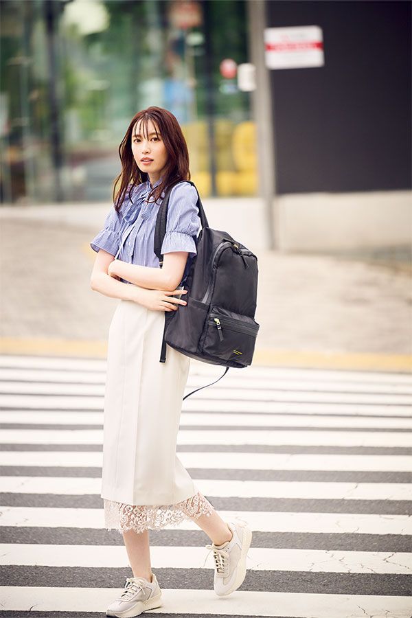 荷物の多い日だってアクティブに過ごせる♡リュックとスニーカーをONした百花OLスタイル〈8/28のコーデ〉