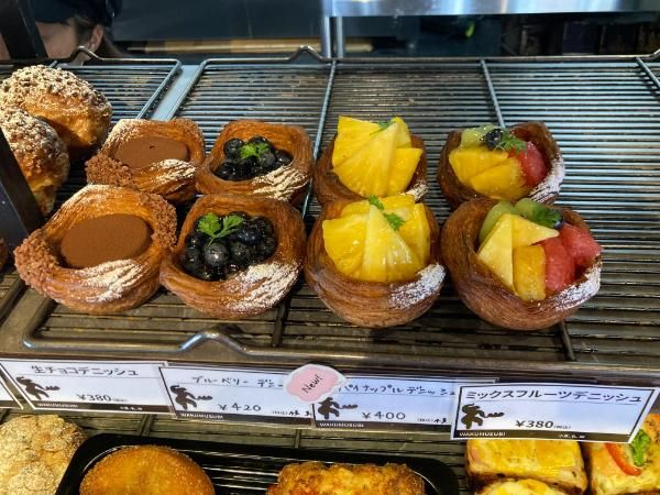 WAKUMUSUBIでは旬のフルーツを使ったデニッシュを店頭に並べているとのこと。 果物の旬が終わってしまうと、デニッシュも終売してしまうそうなのです…