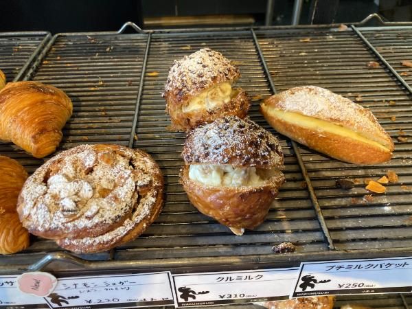 一番左のプチミルクバケット(一般的なミルクフランス)は、周りのフランスパン生地がしっかりした噛み応えで、中のミルククリームもほどよい甘さで美味しかったです。