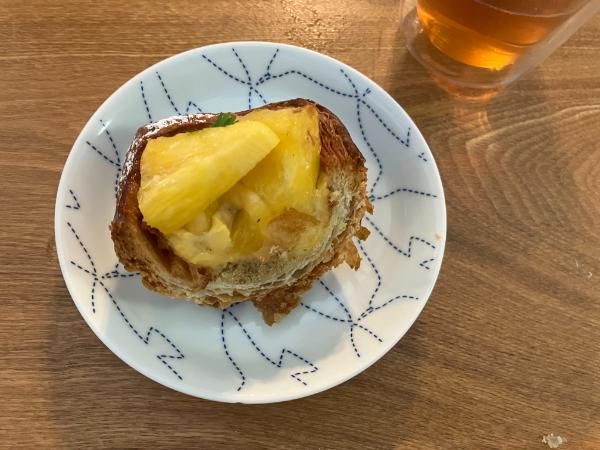店頭で見てデニッシュがとてもおいしそうだったので、パイナップルデニッシュをチョイス。 デニッシュって、ケーキ屋さんやデニッシュ専門店なども存在しますけど、けっこうお値段張りますよね… でもこちらでは、300円台後半から買えるのは嬉しい! お値段はお手頃とはいえ、味のクオリティは高いんです。