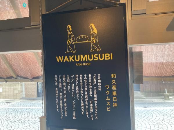 店名のWAKUMUSUBIという名前は、日本神話の神”和久産巣日神”ワクムスビが由来だそうです。 お店のショップ袋にもパンを運ぶ神々様のイラストがデザインされています。