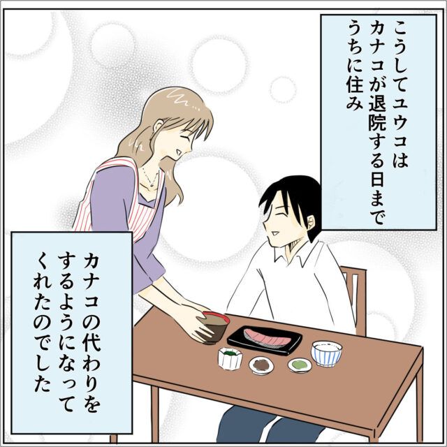 こうしてユウコはカナコが退院するまでうちに住み、カナコの代わりをするようになってくれたのでした。