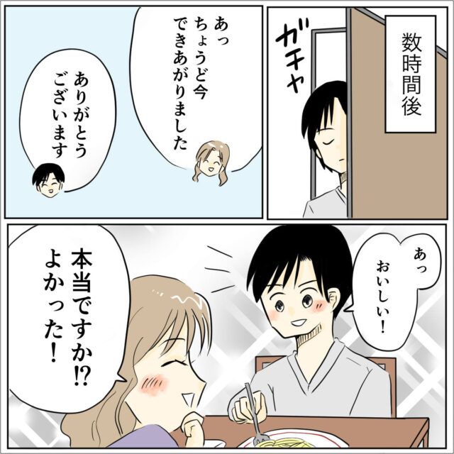 試験のための勉強に集中し、数時間後に部屋から出て行くと「あっちょうど今できあがりました」とユウコがタイミングよく食事を準備してくれていました。