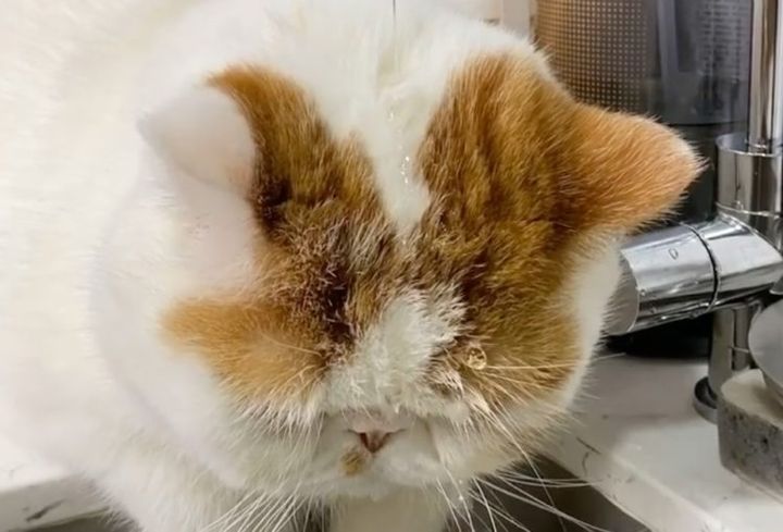 3. 打たせ湯かな?頭に水があたっても気にしない猫さん。