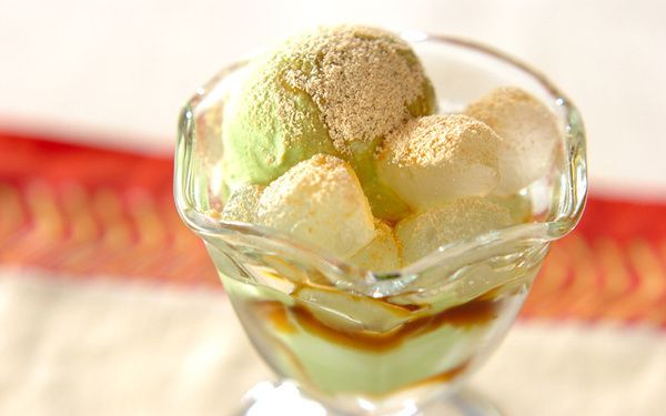 わらび餅と抹茶アイスクリームを盛り付けるだけの簡単パフェです。アイスクリームのクリーミーさとわらび餅のもっちり感がベストマッチ。抹茶風味のわらび餅とバニラアイス、コーヒー味のわらび餅とバニラアイスなど、好みの組み合わせでアレンジを楽しみましょう。