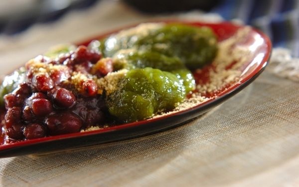 わらび餅の生地に抹茶を混ぜ込む、簡単アレンジです。わらび餅自体には香りがないため、抹茶をプラスすることで風味豊かに仕上がりますよ。抹茶本来の苦みとゆで小豆の甘さがぴったり。甘いもの好きな方は、黒みつをかけても良いですね。