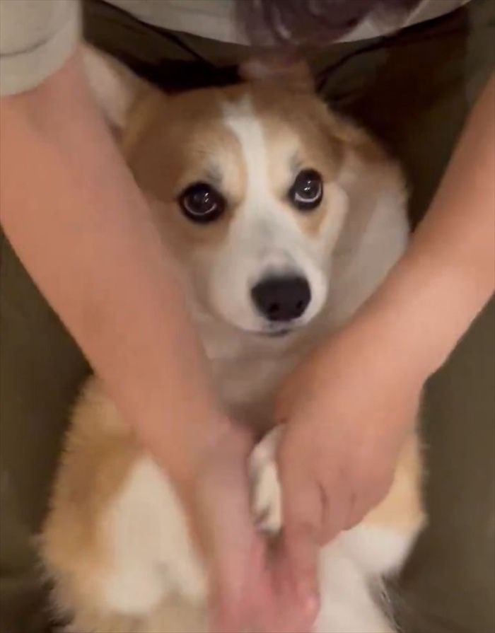 子犬の頃からルーティーンにご満悦!じっくりエステを受けるコーギーに「お手てぴょい〜んがかわいい」「ママを独り占めだね」