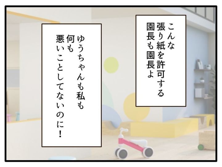 保育園の掲示板に貼られた「身だしなみのお願い」。その内容がゆうこの金髪を指していることは明らかでした。他の保護者たちからの間接的な非難に戸惑い、えみこは複雑な思いに包まれます。
