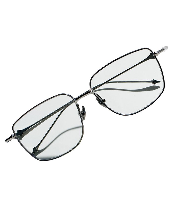 メガネ¥29,700(キュービッツ/ブリンク 外苑前)シャツ¥8,690(リリアン カラット)ピアス¥16,500リング¥41,800(ともにウノアエレシルバーコレクション/ウノアエレ ジャパン)