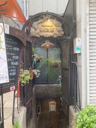 JR吉祥寺駅を出て、吉祥寺ダイヤ街を東急百貨店側に歩いていくと、アーケード内に独創的な看板があります。 ここが吉祥寺で40年以上続く老舗カフェ「COFFEE HALL くぐつ草」への入り口。