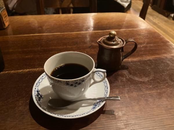 こちらがネイドリップ抽出された本格珈琲!!吉祥寺で長年にわたって息づく老舗喫茶のブレンドコーヒーです! レトロで大人の雰囲気ただようお店に映えて…絵になります。 味はストロングとソフトから選べますが、今回は気分に合わせてソフトに。奥深い味わいがふわっと広がって…豊かな気持ちに。