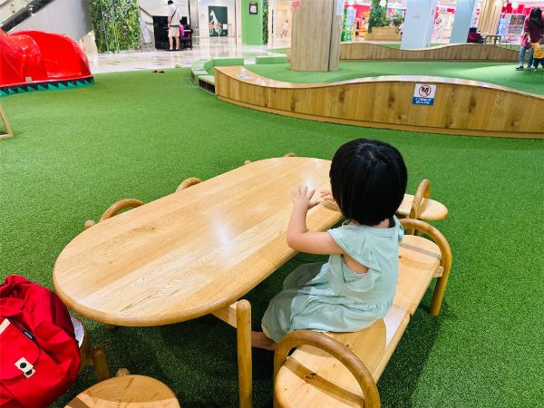 芝生広場ではイスとテーブルが用意されており、持ち込んで飲食可能。こんなかわいい子ども用のイスとテーブルもありましたよ。