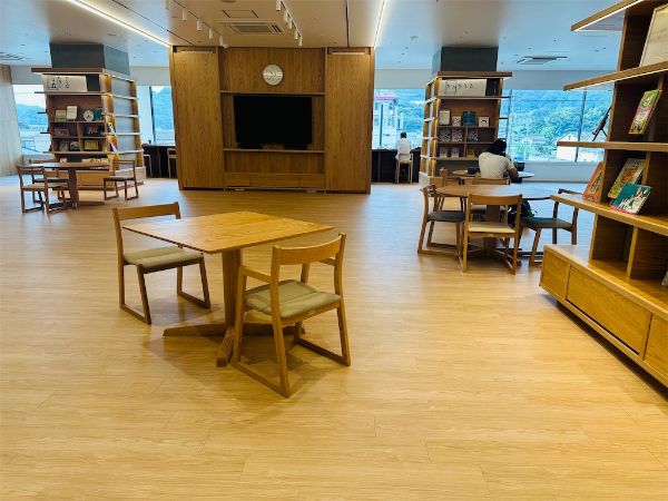 テーブル席とカウンター席が設けてあり、おしゃれなブックカフェのようです。 本を読んだり、勉強や仕事をしたりするのにおすすめなエリアです。