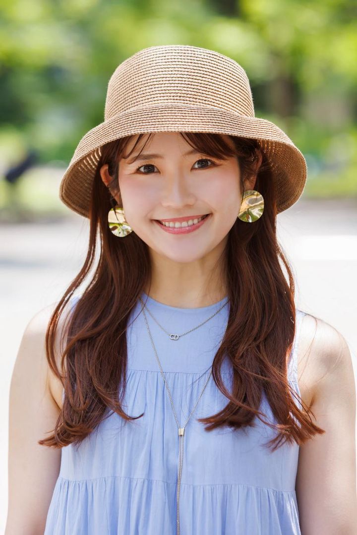 「サンバリアの日傘は4月頃にはすでに完売するものもあるので、早めにチェックするようにしています。特に持ち運びに便利な折り畳みタイプが使いやすいです」加嶋愛美さん・160㎝(会社員/4歳の男の子と2歳の女の子ママ)