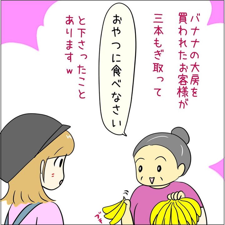 あとみさんは、「たまに安いのにすごい大房ありますそんなには食べれないからかな?でも三本ももぎ取って下さったら嬉しいかもだけど笑っちゃいそうです」とコメント。レジスタッフと客の心温まる交流に、ほっこりしました!