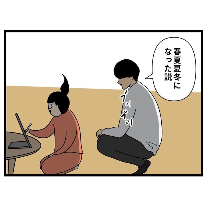 その後も「春夏夏冬になった説」「今日ずっと下痢」など、つぶやくぱく太くん。「なんですか!?さっきからブツブツ言ってきて」とこめ美ちゃんが言うと、アナログで投稿していると告げるぱく太くんなのでした。