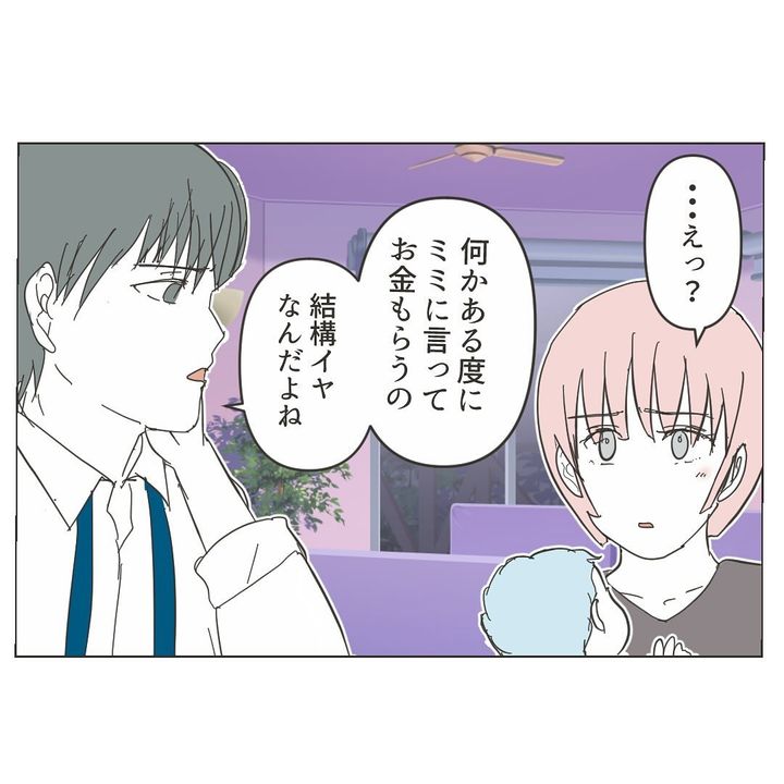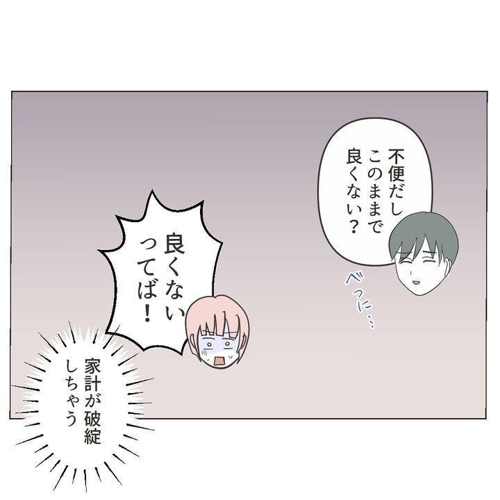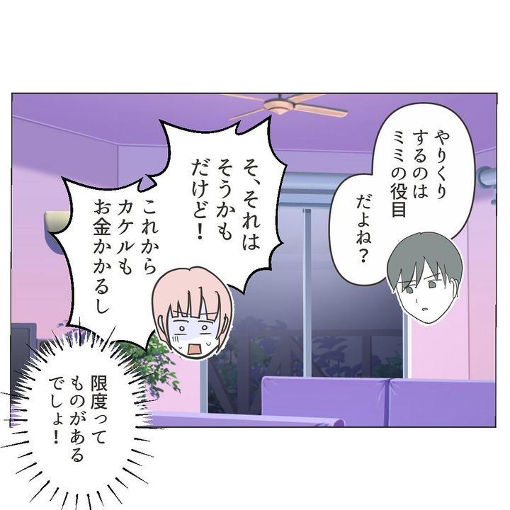 ワタルさんにそのことを追及すると、夫婦別財布を提案されました。しかし、ミミさんは、あったらあっただけ使うワタルさんに、貯金ができるのか心配な様子。当のワタルさんは、やりくりするのはミミさんの役目で、自分は悪くないと自分は悪くないと言い張ります。ついには、自分の浪費を棚に上げ「仕事復帰すれば」とミミさんに言い放つのでした…。