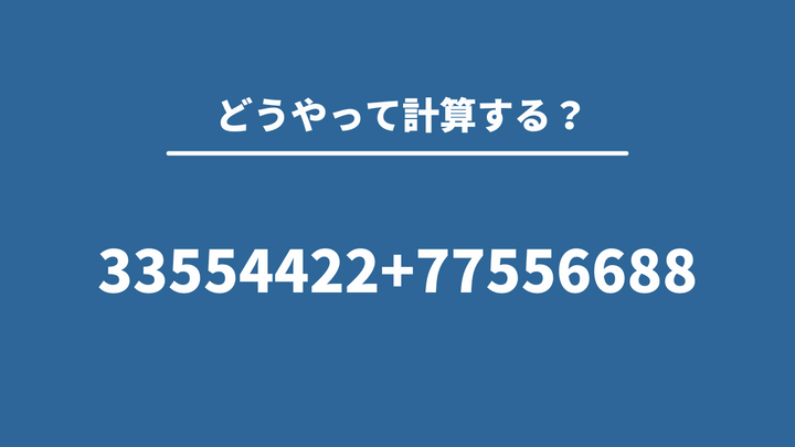 大人が意外と解けない算数「33554422+77556688」→どうやって計算する?