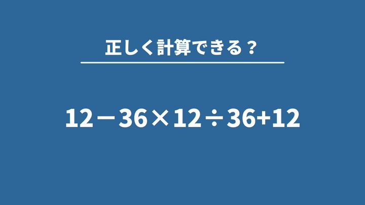 大人が意外と間違えやすい算数「12−36×12÷36+12」→正しく計算できる?
