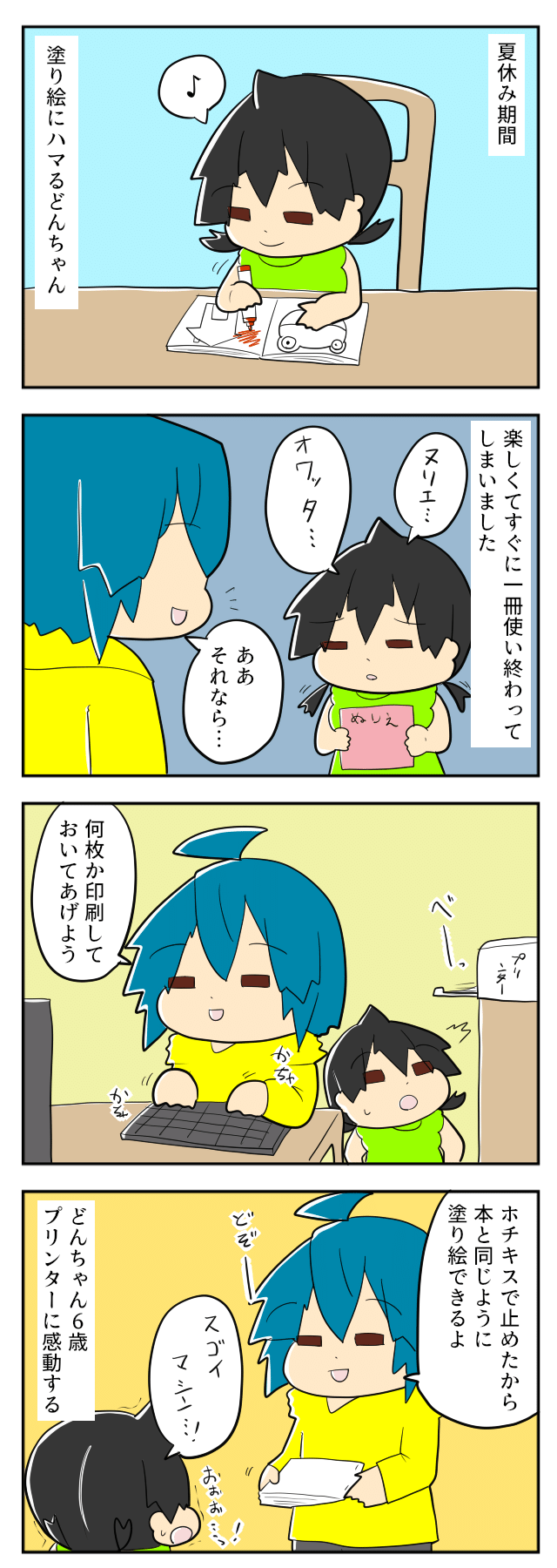 3. 塗り絵にハマった6歳娘、次々と塗り絵を出してくれるプリンターに感動|mochikoの育児マンガ