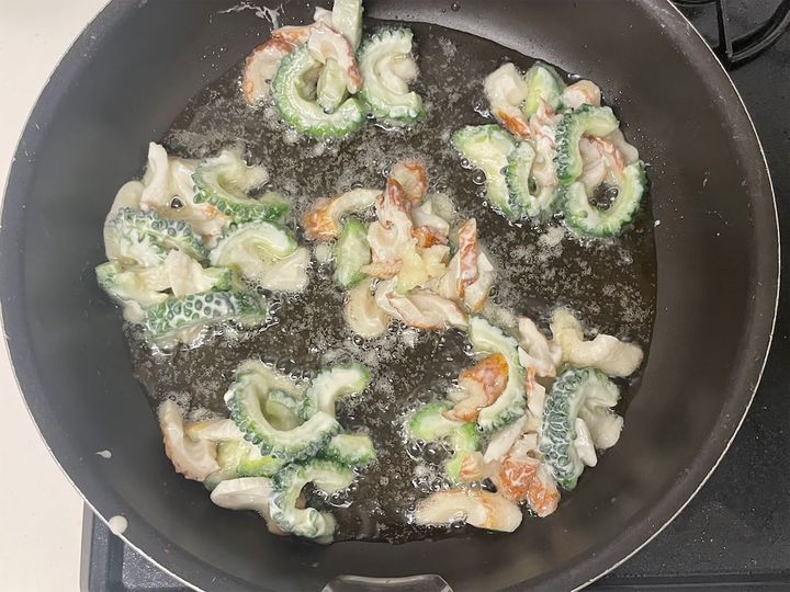 ゴーヤって苦いイメージがありますが、きっちり塩抜きし、揚げたことで苦味はほとんど感じませんでした。