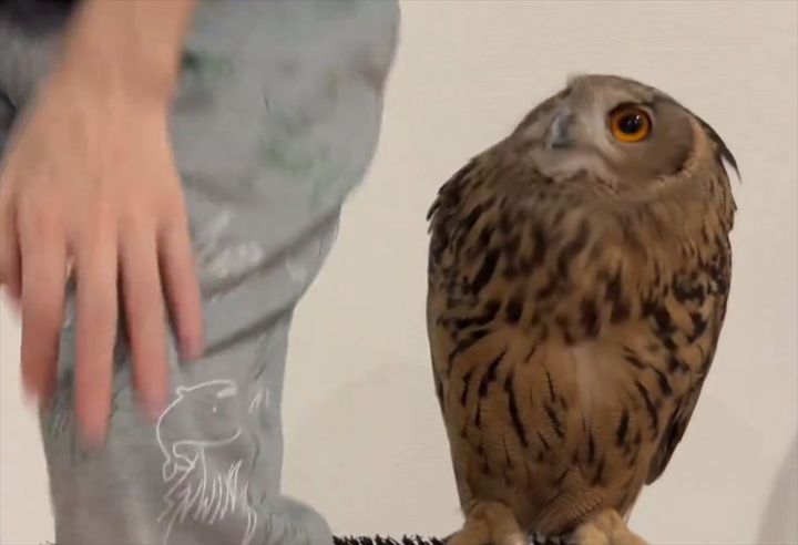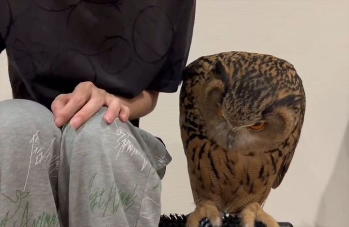飼い主さんにとても懐いている様子のユーラシアワシミミズク。 ところが、せっかく横並びでいたのに、隣りからいなくなってしまうと・・・。