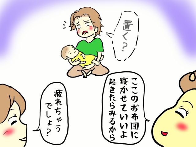 3. 難易度高めなミッションに挑戦。腕の中で眠る甥を布団に寝かせるだけで緊張しまくり。甥っ子を溺愛する叔父[2]|てる子の育児日記